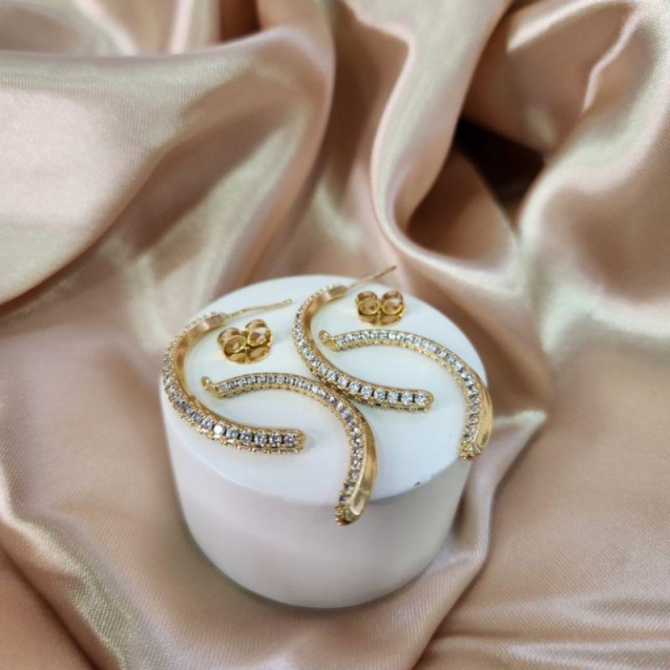 BRINCO PRATA TRIANGULO MADREPÉROLA ZIRC...