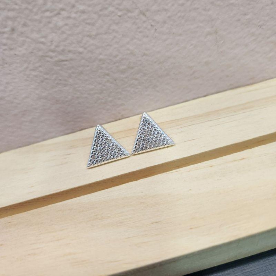 BRINCO PRATA TRIANGULO MADREPÉROLA ZIRC...